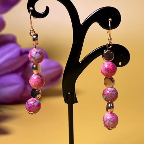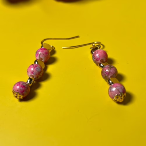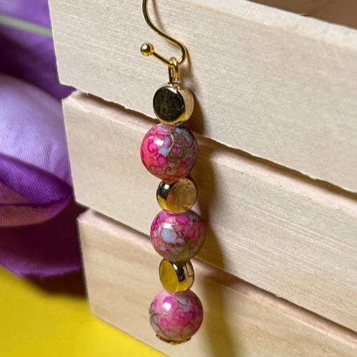 But that’s not all! We’ve added gold-plated spacer beads that perfectly complement the soft pink hues, giving these earrings a touch of luxury and sophistication. Whether you’re dressing up for a night out or adding charm to your everyday look, these earrings are the ideal choice to elevate your style!