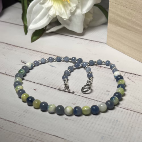 Dive into the depths of style with our stunning Blue Adventurine Beaded Necklace! Made with 8mm Natural Blue Adventurine Gemstones and 6mm Dark Sea Beads, this piece is not just a necklace; it’s a treasure chest of elegance waiting to be discovered. Who knew that accessorizing could feel like a mini-vacation?