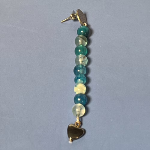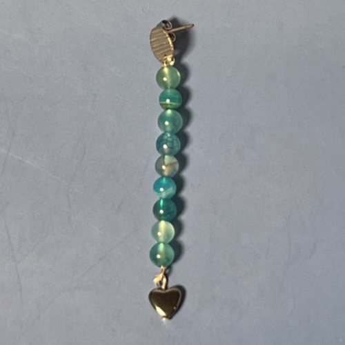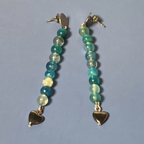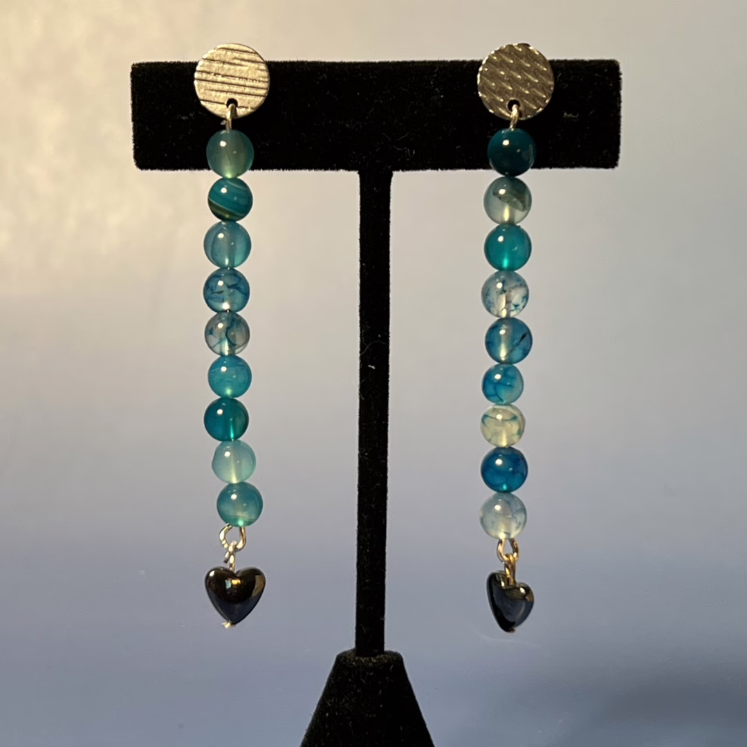 | Materials | Blue Striped Agate and Silver Heart Beads, silver-plated earring components |