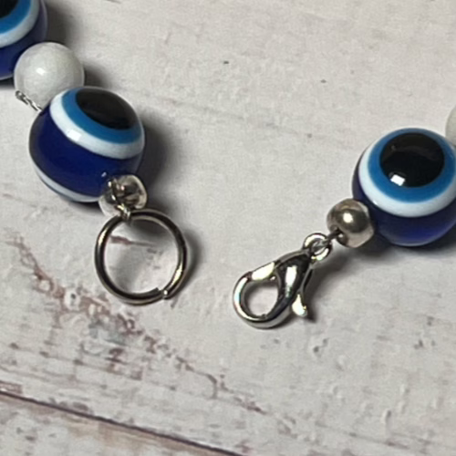| Materials | 10mm Natural Blue Tiger's Eye and 6mm white spacer beads, silver plated necklace components |