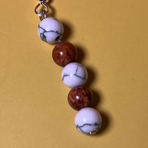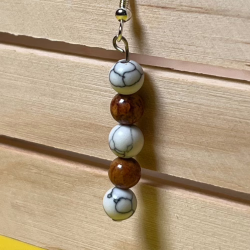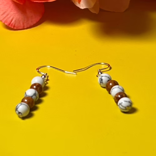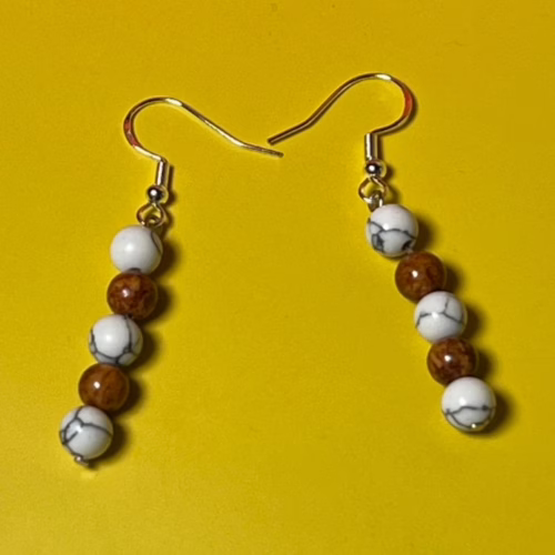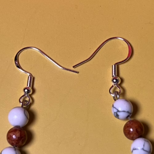 | Materials | White Howlite Beads, Light Brown Cat’s Eye Beads, silver plated earring components |