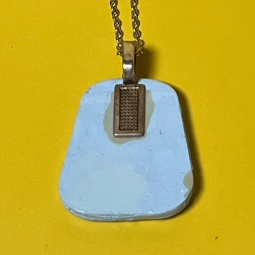 | Materials | Polymer Clay – White Acrylic Paint – Judikins ROX™ – silver-plated bail – 18" chain – Barrel Clasp |