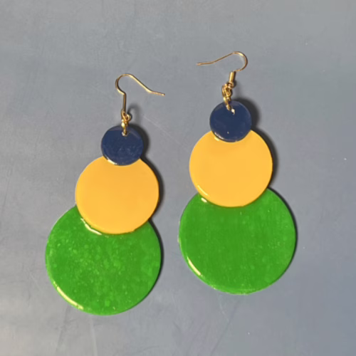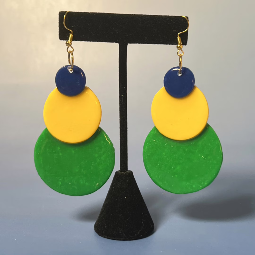 To top it all off, the gold-plated earring components add a touch of elegance and sophistication, making these earrings the perfect accessory for any occasion. Whether you’re treating yourself or searching for a thoughtful gift, our Discs of Color Earrings are a delightful choice. Don’t miss out on the chance to own a piece of wearable art—shop now and add a splash of color to your jewelry box!