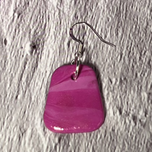 These Drifting Purple Drop Earrings are composed of Polymer Clay and silver-plated earring components including ear wires