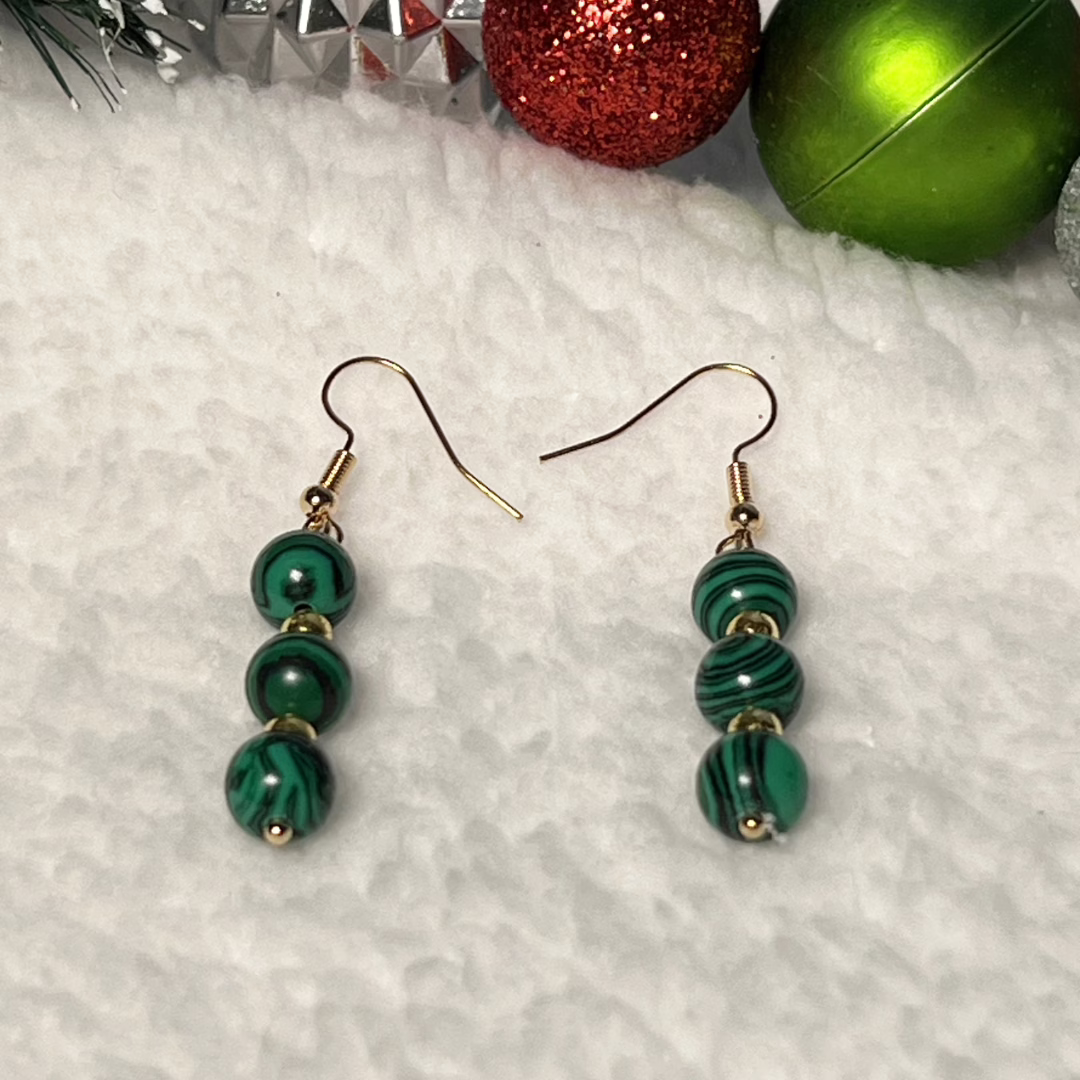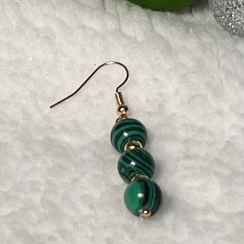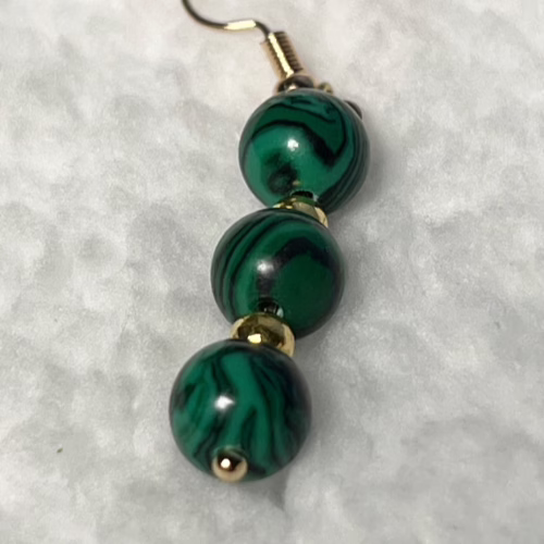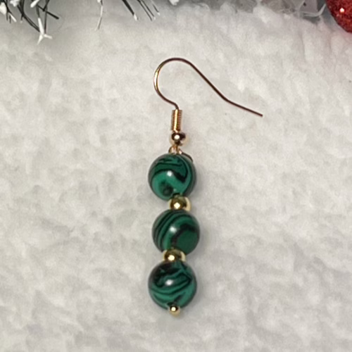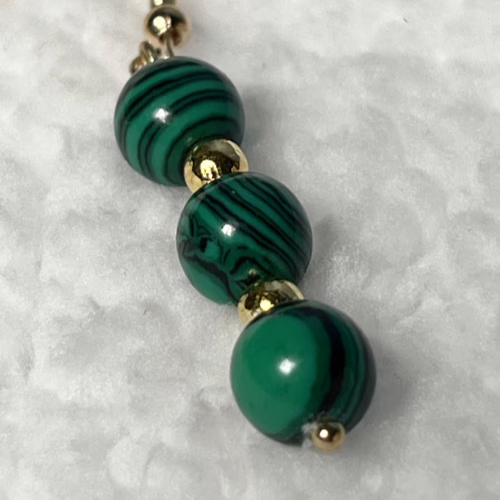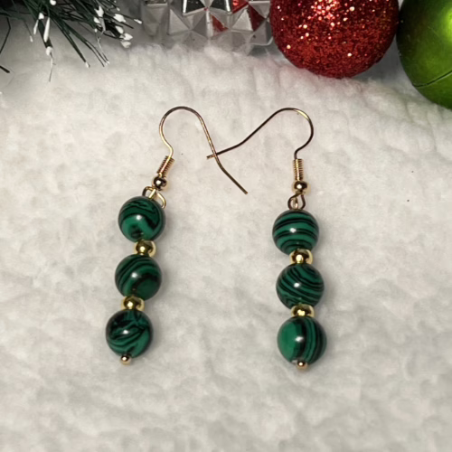 | Materials | Natural Green Malachite Stone Beads, gold-plated spacer beads, earring components |