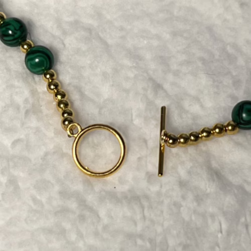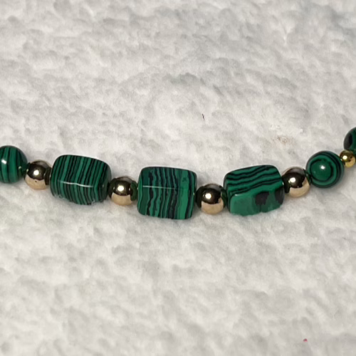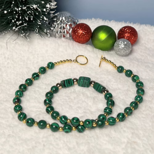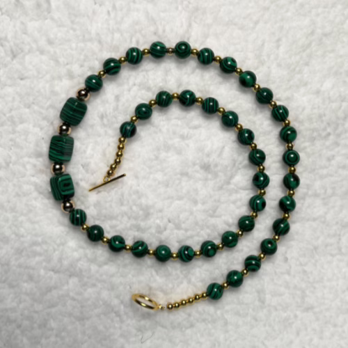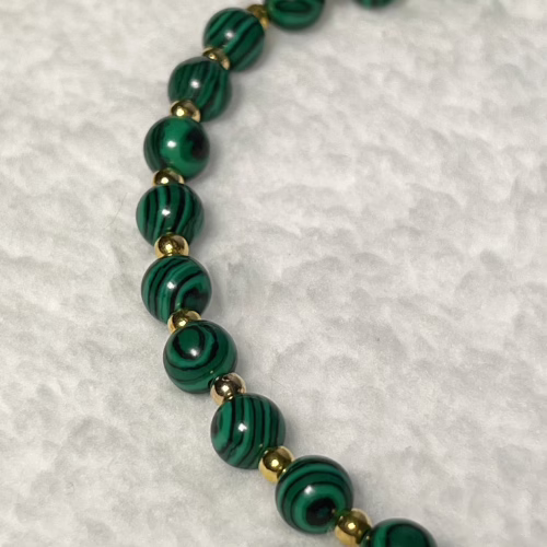 | Materials | Natural Green Malachite Stone Beads, gold-plated spacer beads, necklace components |