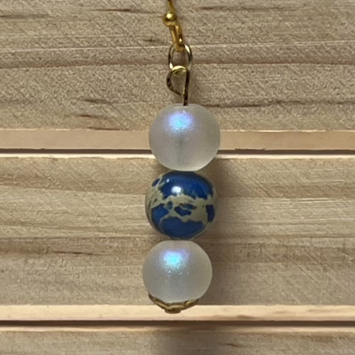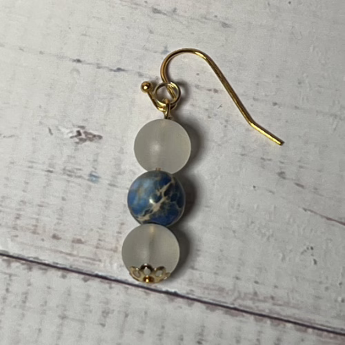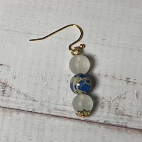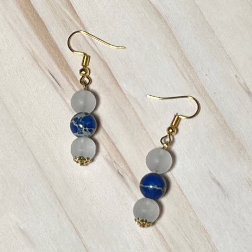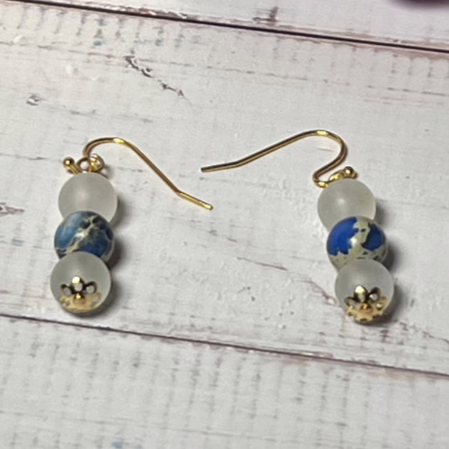 | Materials | Natural Sodalite Beads, Sparkling Frosted Glitter Glass Beads, gold plated earring components |