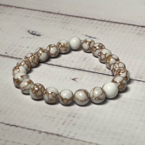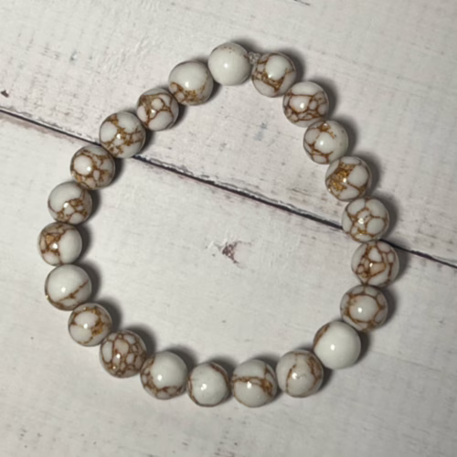 These Golden Veined Howlite Bracelets are composed of 8mm Elegant Golden Veined Howlite Beads and elastic cord