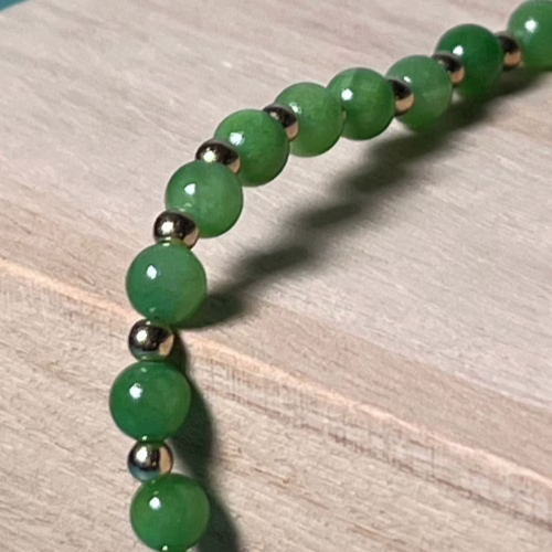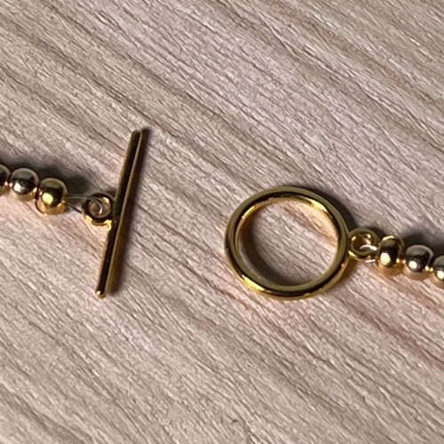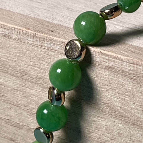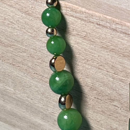 | Materials | Natural Green Chalcedony Stone, gold-plated disc and round spacer beads, toggle clasps |