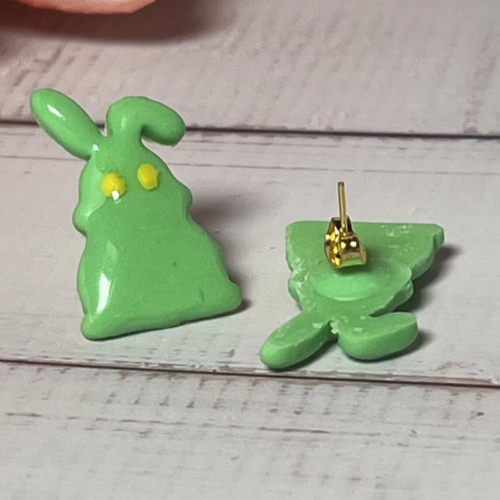 These Green Easter Bunny Earrings are composed of Polymer Clay and Gold-plated Earring components