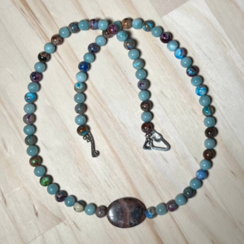 Unleash your inner sparkle with our stunning Hematite and Jasper Necklace! This isn’t just any accessory; it’s a dazzling conversation starter that will have everyone asking, “Where did you get that?” Crafted from Natural Rainbow Hematite Beads and a vibrant mix of Red Blue and Colorful Sea Sediment Jasper Beads, this necklace is like a party for your neck!