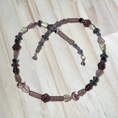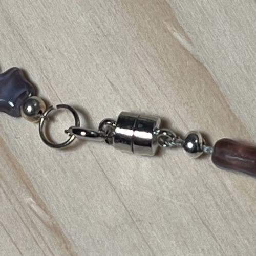 | Materials | mixed acrylic beads, silver plated necklace components including a magnetic clasp |