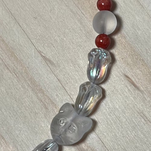 | Materials | mixed acrylic beads, silver-plated necklace components including a floral toggle clasp |