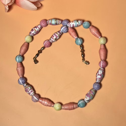 | Care | Paper bead jewelry, while beautiful and unique, requires gentle care to maintain its longevity and vibrant appearance. 1. Handling and Wearing: 2. Cleaning: 3. Storage: 4. Longevity and Maintenance: Proper care can help your paper bead jewelry maintain its beauty for years. |