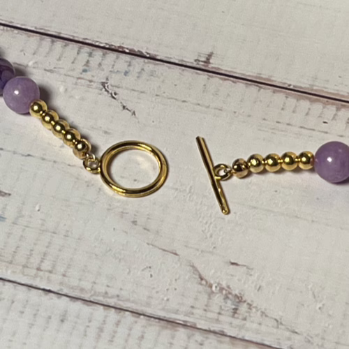 | Materials | Natural Optimized Purple Morganite, Natural Stone Vein Agate beads, gold-plated necklace components |