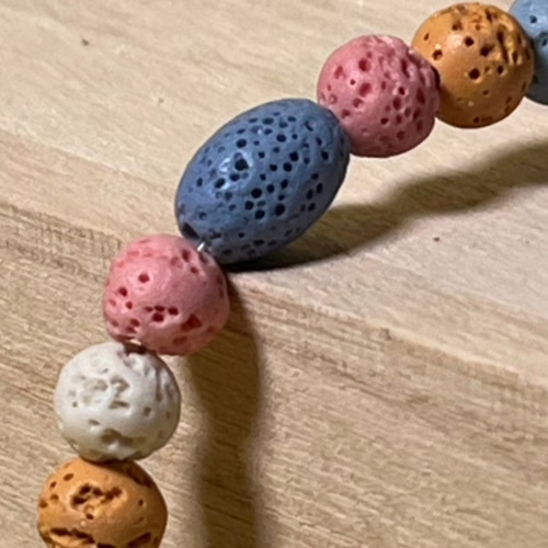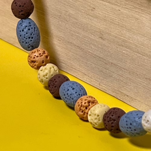 | Care | Lava beads, formed from volcanic rock, are naturally porous and rugged. This porosity makes them excellent for diffusing essential oils but also means they require specific care to maintain their appearance and integrity. Multicolor lava beads may also be dyed, which adds another element to consider when caring for your jewelry. Here are key aspects of caring for your multicolor volcanic lava bead jewelry: Cleaning Essential oil application (if applicable) Wearing and handling Storage By following these care instructions, you can ensure that your multicolor volcanic lava bead jewelry remains beautiful, functional (if used for aromatherapy), and lasts for many years to come. |