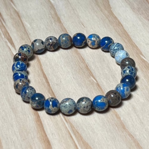These Natural Blue Sodalite Bracelets are composed of 8mm Natural Blue Sodalite beads and elastic cord.