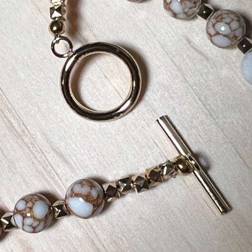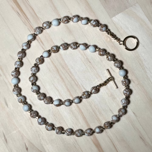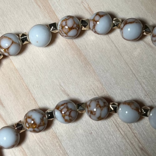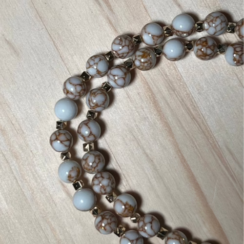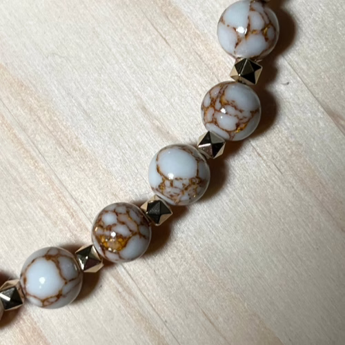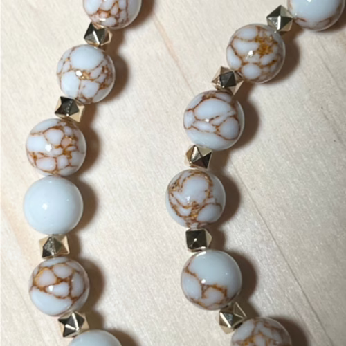 | Materials | Natural White Spun Howlite Gemstones, gold plated spacer beads and necklace components |