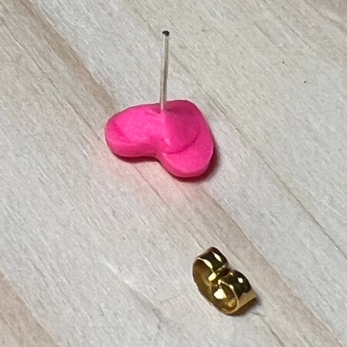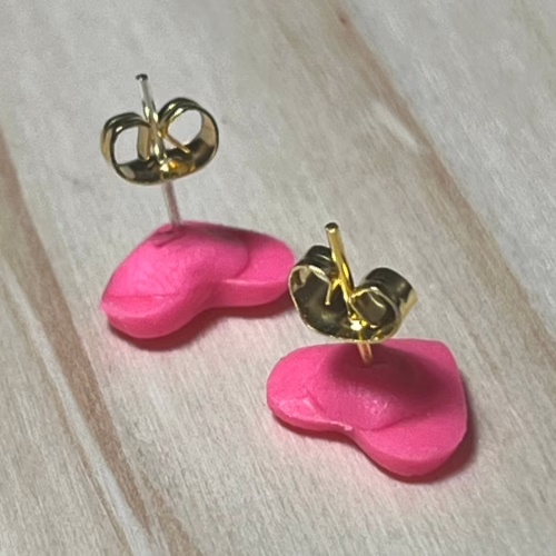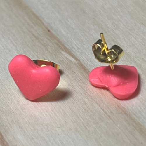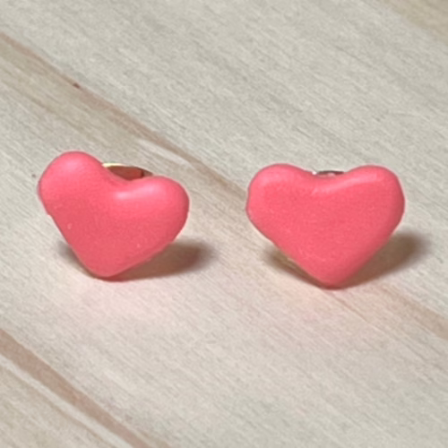 These Neon Pink Heart Earrings are composed of neon pink polymer clay and gold plated earring studs.