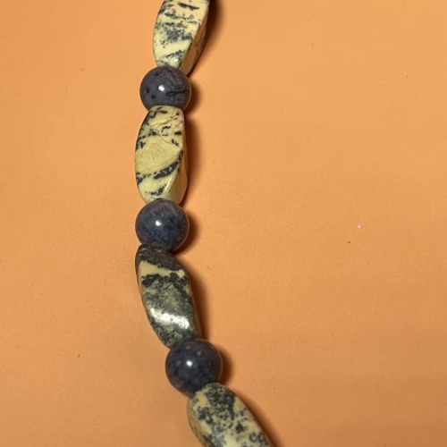 | Materials | Large Rectangular Focal Beads with a Mix of Round and Barrel Beads, Silver-plated spacer beads and an Antique Silver-plated Toggle Clasp |