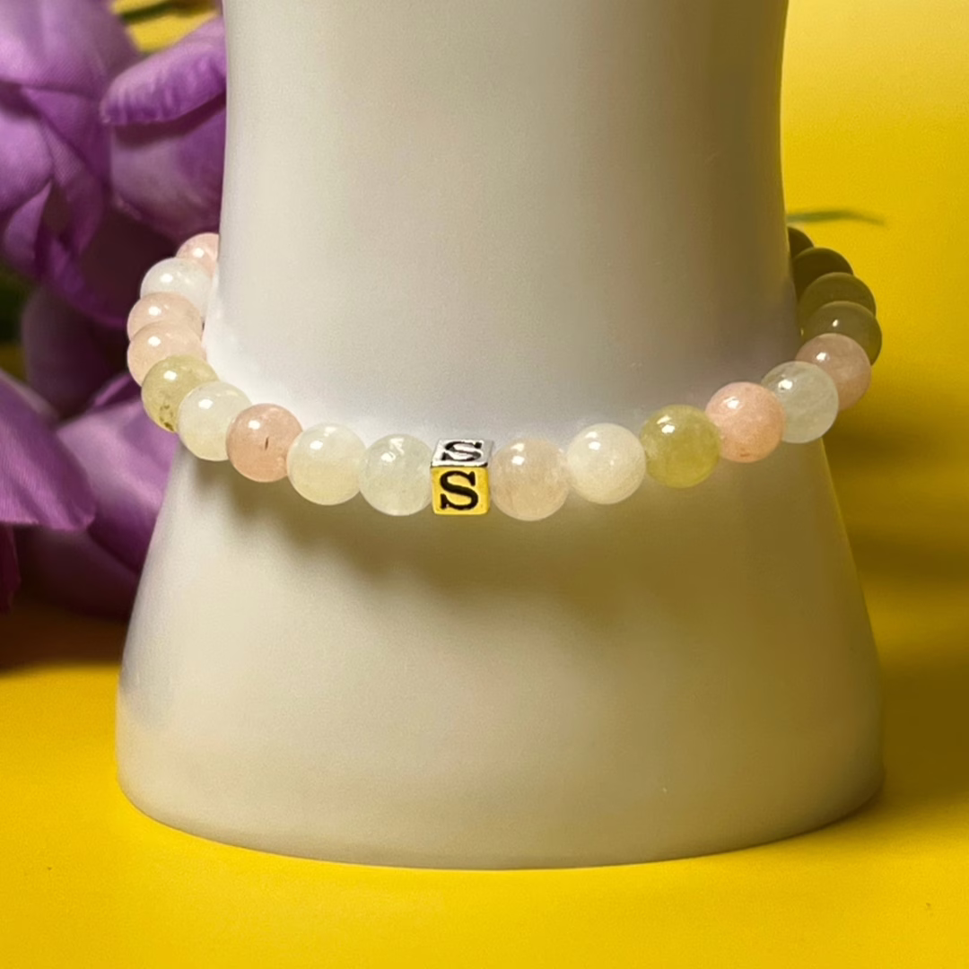 Embrace Your Unique Journey with Our Powder Morganite Initial Bracelet!