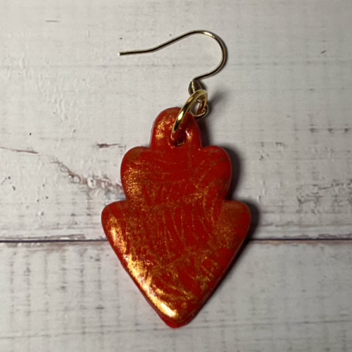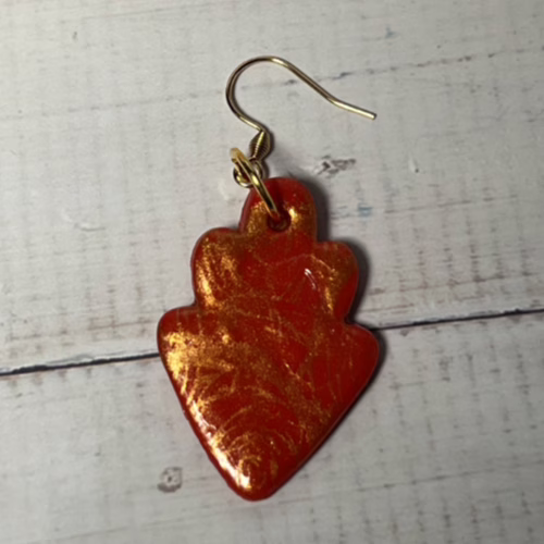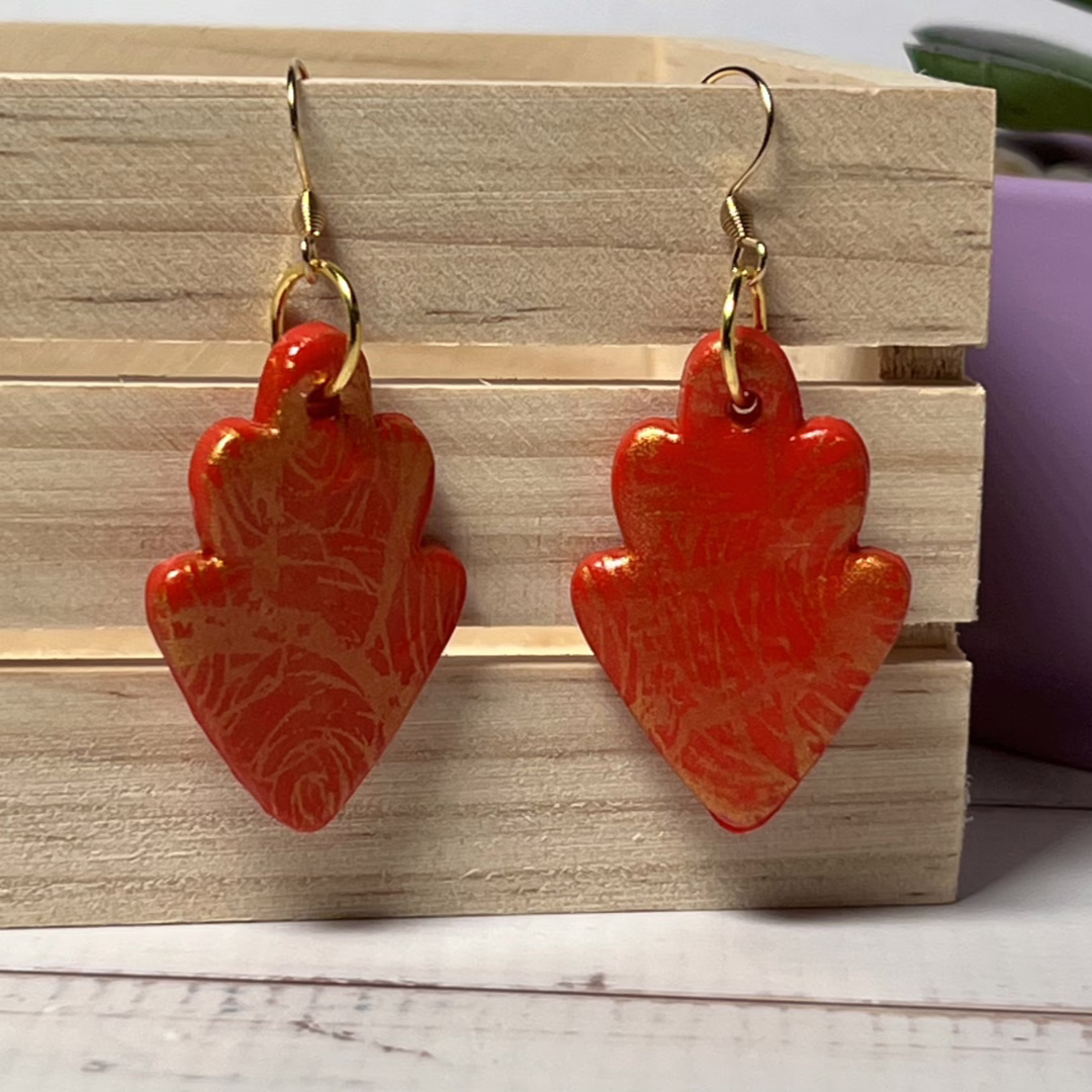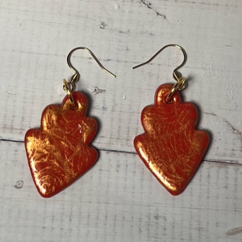 | Materials | Polymer Clay, Gold Mica Powder, DuraClear Gloss Varnish, gold-plated earring components |
