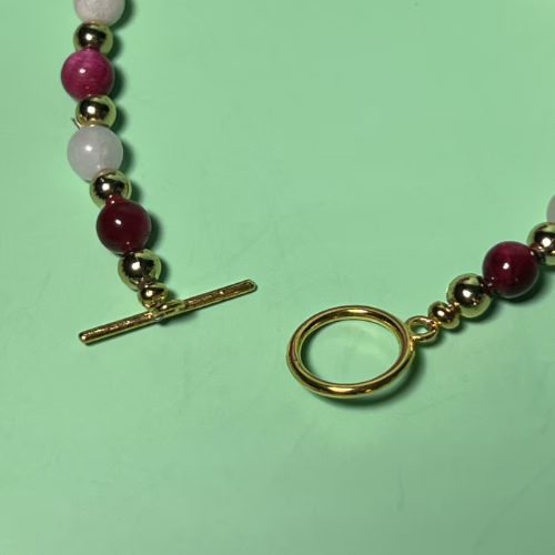 But wait, there’s more! We didn’t stop at just vibrant beads. We’ve tossed in some 8mm Natural Red Cloisonné Stone and 6mm Optimized Morganite Beads for that extra sparkle that says, “I woke up like this—fabulous!” And let’s not forget the Antique Golden Retro Style Spacer Beads that tie it all together like a vintage bow on a modern masterpiece. With a gold-plated Toggle Clasp, putting on this beauty is as easy as strutting your stuff on the dance floor!