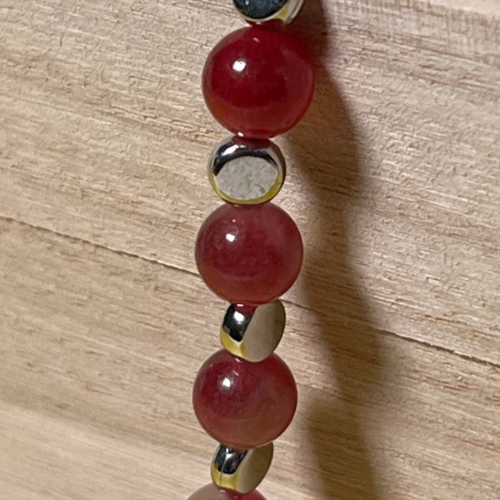 | Materials | Natural Rose Red Tiger Eye Stone, silver plated round spacer beads, necklace components |