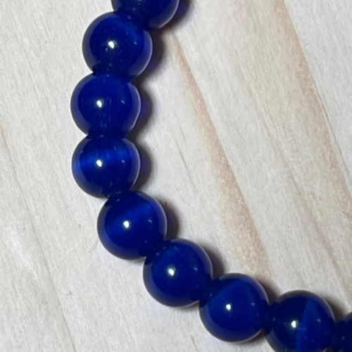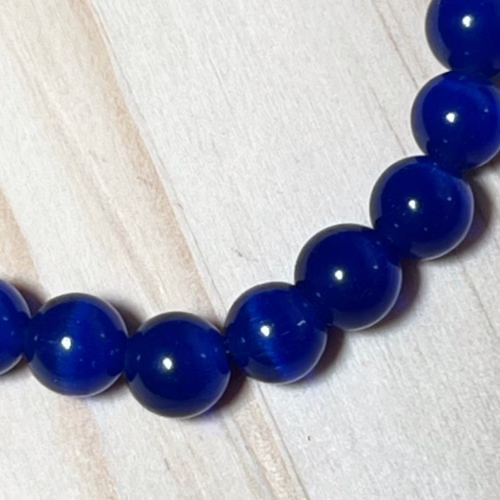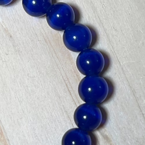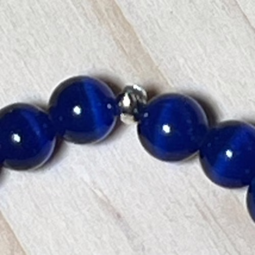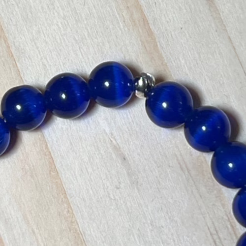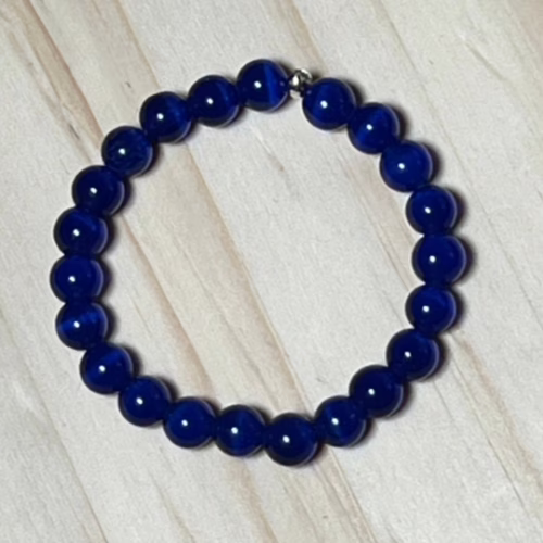 This Royal Blue Stone Bracelet is composed of 8mm Natural Royal Blue Stone Beads, a silver plated bead cover and elastic cord.