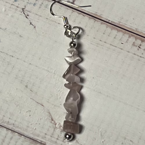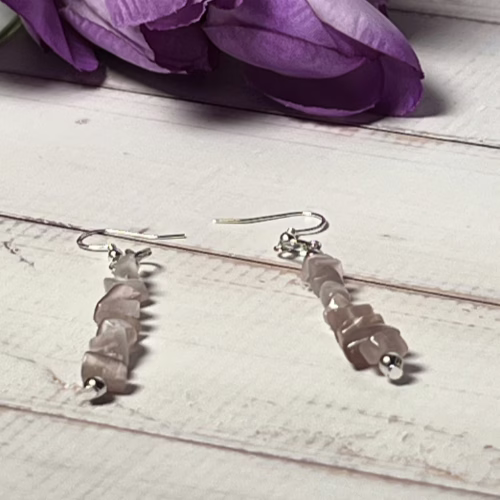 These Shards of Lavender Earrings are composed of lavender shards and silver-plated earring components including ear wires