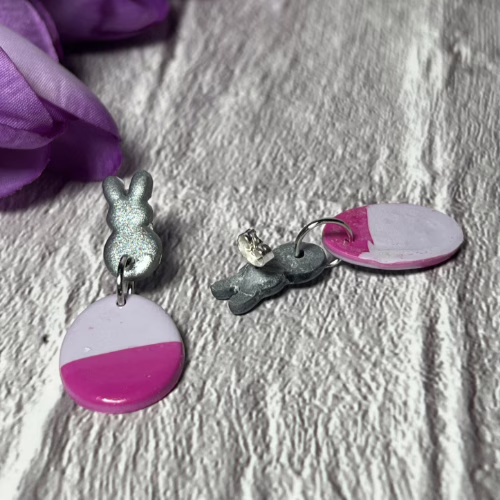 These Silver Bunnies Drop Earrings are composed of Polymer Clay and silver plated earring components