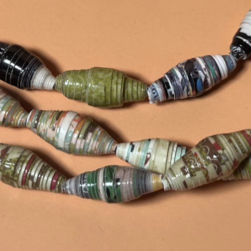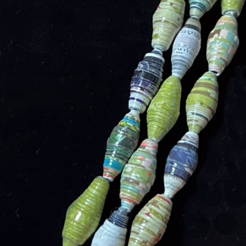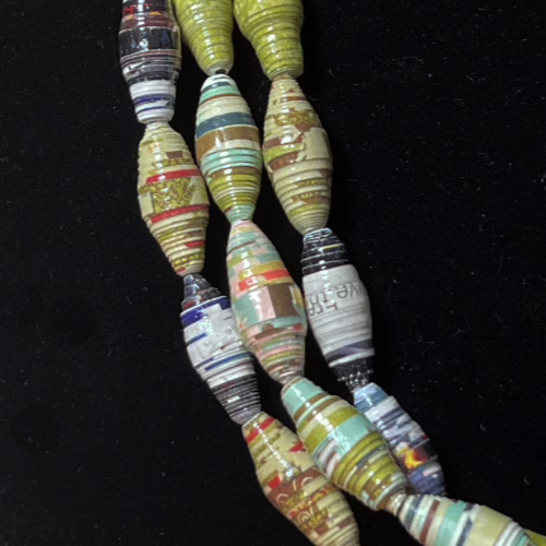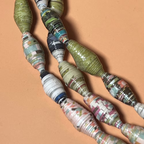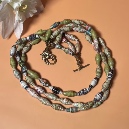 So why not treat yourself (or someone special) to this delightful accessory? With its toggle clasp, it’s as easy to wear as it is to love. Whether you’re dressing up for a brunch date or just want to add a little flair to your everyday look, this Spring Rolled Paper Bead Necklace has got you covered. Get ready to turn heads and collect compliments – because who doesn’t want to be the life of the party?