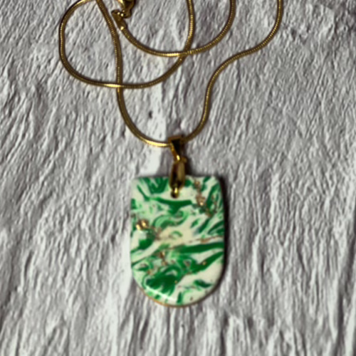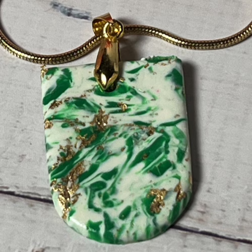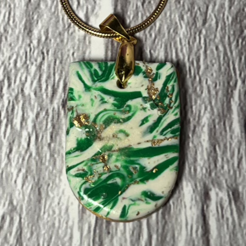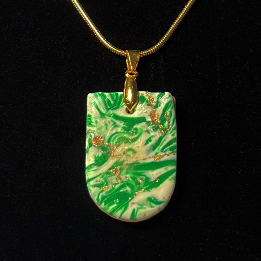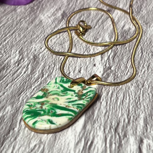 | Materials | Polymer Clay, Gold Leaf and Gold-plated Necklace Components |
