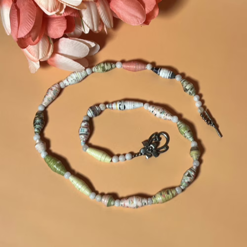 Dive into summer vibes with our dazzling Summer Hues Paper Bead Necklace! This isn’t just any accessory; it’s a statement piece that says, “I’m here for a good time and a long time!” Hand-rolled from vibrant scrapbook paper, each bead is a tiny work of art, ready to add a splash of color to your outfit. Who knew that recycling could look this fabulous? Talk about giving new life to old paper—Mother Earth is practically sending us a thank-you note!