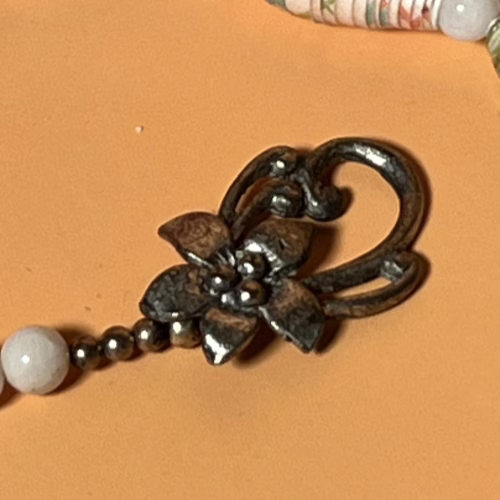 But wait, there’s more! We’ve sprinkled in some chic white and brass round spacer beads to keep things interesting. It’s like the perfect playlist for your neck—just the right mix of fun and sophistication. And let’s not forget about the antique silver clasp set, which adds a touch of vintage charm. It’s the kind of necklace that’ll have your friends asking, “Where did you get that?” while you casually sip your iced tea and bask in the compliments.