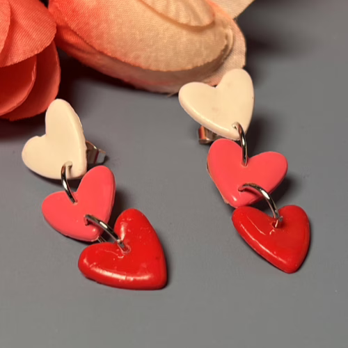 Elevate your style and embrace your unique beauty with our stunning Triple Heart Drop Earrings! Handcrafted from vibrant polymer clay and adorned with elegant silver-plated components, these earrings are more than just an accessory; they are a celebration of love, individuality, and self-expression. Each heart represents a piece of your journey, reminding you to cherish every moment and every connection that makes you who you are.