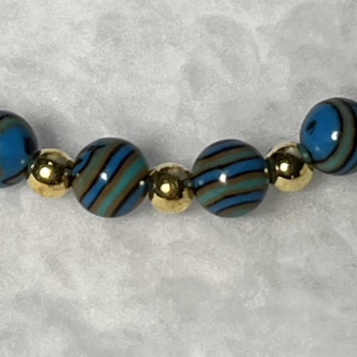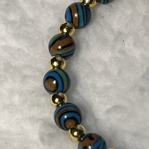 | Materials | Turquoise Agate beads, gold-plated round spacer beads and elastic cord |