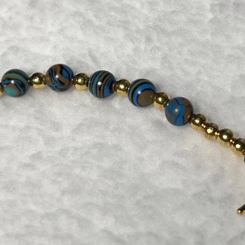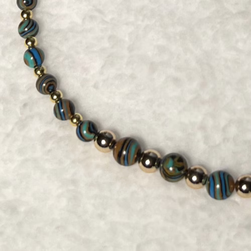| Materials | 6mm and 8mm Turquoise Agate beads, gold-plated round spacer beads, necklace components |