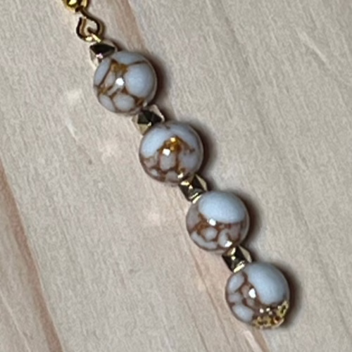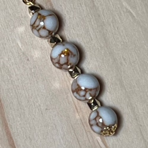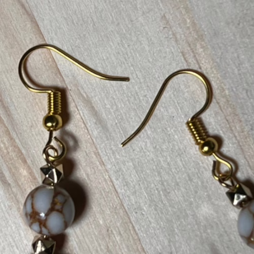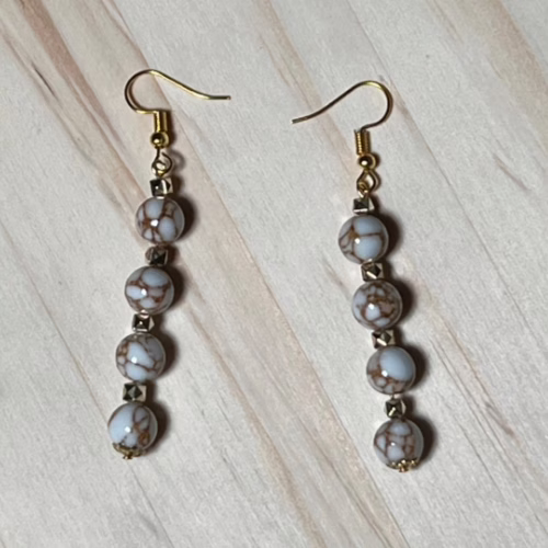 | Materials | Natural White Spun Howlite Gemstones, gold plated spacer beads, earring components |
